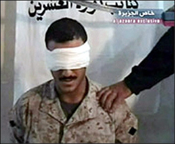 就在這份錄像被播放之前,半島電視臺(tái)還播放了另一份來(lái)自伊拉克身份不明的槍手的錄像帶,內(nèi)容是威脅要砍掉一名巴基斯坦人質(zhì)的頭,除非美軍釋放伊拉克囚犯。