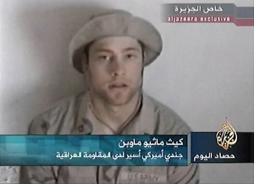 半島報(bào)道說,這名美國士兵名叫莫平,是來自美國俄亥俄州的一名二等兵,他在4月9日當(dāng)他所屬的連隊(duì)在巴格達(dá)市外受伏擊時被武裝份子逮捕的,是當(dāng)時失蹤的8名美國人之一。