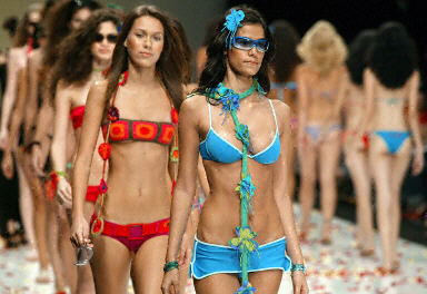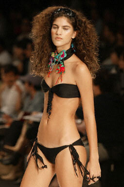 6月30日,里約熱內(nèi)盧時裝周上模特展示設計師Miquelina設計的比基尼。