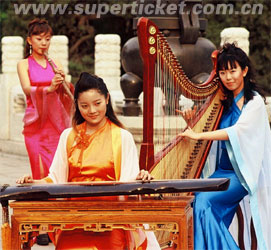 瑟:中國原始的絲弦樂器之一,共有二十五根弦!对娊(jīng)》中有記載"窈窕淑女,琴瑟友之","我有嘉賓,鼓瑟鼓琴"。瑟曾銷聲匿跡千年之久,而今“幽蘭漢樂”將傳說中的聲音再次呈現(xiàn)于舞臺之上,琴瑟合鳴,樂聲如流水,如鳳鳴,如南風(fēng),如月行,引我們走進大自然深深的芬芳里。箜篌:中國古老的彈弦樂器,始于漢代,歷史悠久;音域?qū)拸V、音色柔美清澈,表現(xiàn)力強。唐時期曾用于西涼、龜茲、疏勒、高麗、天竺諸樂中。明代后失傳達300年之久。