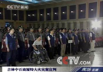 5月24日,檢察機關(guān)根據(jù)責任性質(zhì),對于洪新以失火罪提起公訴,對中百商廈總經(jīng)理劉文建、副總經(jīng)理趙平、保衛(wèi)科科長馬春平、科員李愛民以消防責任事故罪提起公訴,對保衛(wèi)科副科長陳忠、科員曹明君以重大責任事故罪提起公訴。6月11日,吉林市船營區(qū)人民法院開庭審理此案,法庭調(diào)查、舉證和控辯雙方辯論持續(xù)了9個多小時。