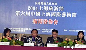 二00四年上海旅游節(jié)、上海國(guó)際藝術(shù)節(jié)推介新聞發(fā)布會(huì),十日在澳門(mén)旅游塔會(huì)展中心舉行。會(huì)上上海市人民政府副秘書(shū)長(zhǎng)楊曉渡希望借助澳門(mén)這一平臺(tái),增進(jìn)滬港澳三地的文化交流 ,促進(jìn)三地的繁榮發(fā)展。作者:梁永強(qiáng)