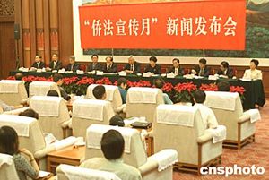 會(huì)上同時(shí)宣布,為了更好地宣傳貫徹僑法,在全社會(huì)特別是國(guó)家行政機(jī)關(guān)增強(qiáng)僑務(wù)法制觀念,更有效地保護(hù)歸僑僑眷的合法權(quán)益,上述五個(gè)涉僑部門(mén)決定自《歸僑僑眷權(quán)益保護(hù)法實(shí)施辦法》頒布實(shí)施之日起,各級(jí)僑務(wù)部門(mén)在七、八月間,利用一個(gè)月左右的時(shí)間在各地組織開(kāi)展“僑法宣傳月”活動(dòng)。通過(guò)組織專題講座、專訪、進(jìn)行執(zhí)法檢查以及開(kāi)展咨詢、知識(shí)競(jìng)賽、舉辦政策法規(guī)培訓(xùn)等多種形式,加大僑法的宣傳和貫徹力度。