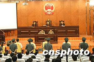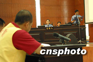“一二·二三”特大井噴事故案七月十四日上午九時三十分在重慶市第二中級人民法院開庭審理。圖審判現場。作者:鄒輝