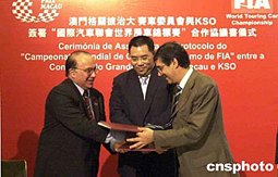 澳門格蘭披治大賽車委員會,十五日在澳門舉行記者招待會宣布:2005年的東望洋房車賽將成為“國際汽車聯(lián)會世界房車錦標賽”(FIA WTCC)的壓軸大戲。作者:梁永強