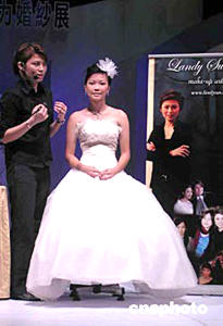 參展商出動美女模特演繹最新款式的婚紗時裝。