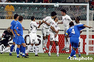 亞洲杯C組比賽七月十八日在成都開戰(zhàn),以國(guó)奧隊(duì)為主的青年軍伊拉克隊(duì)(白)迎戰(zhàn)中亞強(qiáng)隊(duì)烏茲別克斯坦隊(duì)。中新社記者:任晨鳴