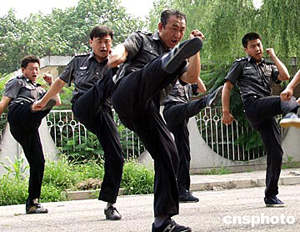 北京昌平警方夏季高溫酷暑時(shí)節(jié),對(duì)巡警、防暴警進(jìn)行警棍基本格斗法、拳腿法組合動(dòng)作、快速出槍、設(shè)卡盤查嫌疑人等項(xiàng)目培訓(xùn),以提高警員巡邏防控、打擊犯罪的能力。作者:甘洪斌