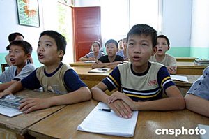 二○○四年七月二十四日,河南上蔡縣蘆崗鄉(xiāng)艾滋孤兒在學習英語。據(jù)悉,該鄉(xiāng)目前有近二百名因父母患艾滋病去世的“艾滋孤兒”。六月份該鄉(xiāng)成立了專門收養(yǎng)艾滋孤兒的福利機構“蘆崗鄉(xiāng)陽光家園”,目前收養(yǎng)四十二名孤兒;二期工程將于八月底完工,計劃新入園艾滋孤兒一百二十名。作者:慎重