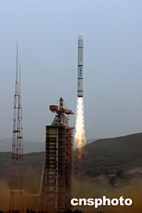 中國“雙星計(jì)劃”的第二顆衛(wèi)星——“探測二號”,二十五日下午在太原衛(wèi)星發(fā)射中心由“長征二號丙”改進(jìn)型運(yùn)載火箭成功發(fā)射升空。中新社記者孫自法攝