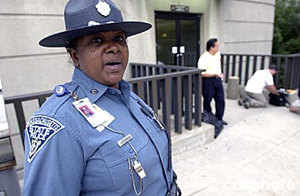 民主黨大會當(dāng)?shù)貢r(shí)間七月二十六日在波士頓開幕,為確保大會安全,自上周五以來,麻州州警取消休假,每日工作13小時(shí),麻州羅根機(jī)場更是警察云集。圖為便衣警察在搜查一位自拉斯維加斯登機(jī)的攜帶毒品的男性嫌疑人,非裔警官阿克嫚叮囑記者不要拍到便衣警察的臉。作者:陳鋼