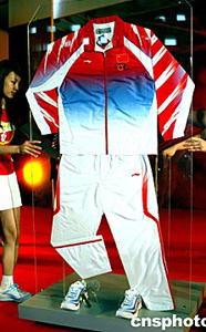 七月二十七日,李寧公司贊助第二十八屆奧運會中國代表團新聞發(fā)布會在北京舉行,李寧公司正式推出以“錦繡中華”領獎服和“極光”領獎鞋為主的領獎裝備。中新社記者:鄭萍萍