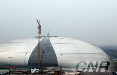 中新網(wǎng)7月28日電 經(jīng)過(guò)兩個(gè)月緊張施工,國(guó)家大劇院6687平方米的玻璃幕墻已經(jīng)全部安裝完畢。
