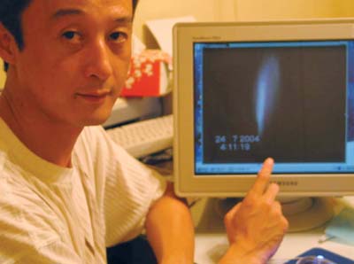 于是,康先生急忙找出攝像機,鏡頭呈仰角大約四五十度,對著該物體拍攝,經(jīng)變焦使影像放大后,發(fā)現(xiàn)該物體是一個呈圓盤狀的發(fā)光體,在正東稍偏南方向。該物體似乎還在自轉,整個過程持續(xù)了20多分鐘。