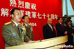 中新社香港八月一日電 中國(guó)人民解放軍駐香港部隊(duì)今晚舉辦“八一”招待會(huì),慶祝建軍七十七周年并感謝香港特區(qū)政府以及香港社會(huì)各界對(duì)香港駐軍長(zhǎng)期以來(lái)的關(guān)心和支持。