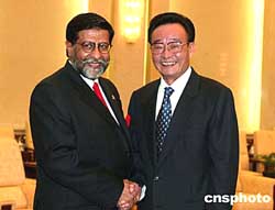 吳邦國(guó)說,中巴是傳統(tǒng)友好鄰邦,兩國(guó)人民之間的友好交往源遠(yuǎn)流長(zhǎng)。建交五十多年來,無論國(guó)際風(fēng)云如何變幻,中巴關(guān)系不斷深化和發(fā)展,各方面合作全面展開。近年來,中巴高層互訪頻繁,在國(guó)際事務(wù)中相互支持。中國(guó)感謝巴方在臺(tái)灣、西藏、人權(quán)等涉及中國(guó)領(lǐng)土、主權(quán)等重大問題上所給予的一貫的堅(jiān)定支持。