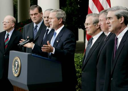 在美國多位安全部門高官的陪同下,布什當(dāng)天在白宮的新聞發(fā)布會(huì)上稱:“我們國家正面臨危險(xiǎn),我們正在盡一切可能對抗危險(xiǎn)!