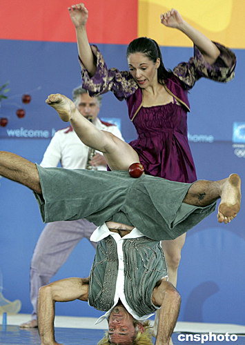 一支激情四射的希臘舞蹈團(tuán),當(dāng)?shù)貢r(shí)間8月2日在雅典奧運(yùn)村內(nèi)為世界各地來賓表演“愛情恩怨”現(xiàn)代精彩舞蹈。中新社記者:任晨鳴