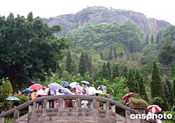 二○○四年八月四日,冒雨前來(lái)鄧家祖墳參觀游覽的海內(nèi)外游客絡(luò)繹不絕。鄧家祖墳位于四川廣安佛手山,是鄧小平家族先孺?zhèn)兊哪箞@,鄧小平的祖母、母親等人均埋于此。作者:郭晉嘉
