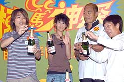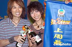無(wú)線(xiàn)電視劇《棟篤神探》劇組8月4日在香港為該劇舉行宣傳活動(dòng),并公布該劇獲高收視佳績(jī),劇中藝員及監(jiān)制即場(chǎng)開(kāi)香檳慶祝。作者:鄧慶樂(lè)