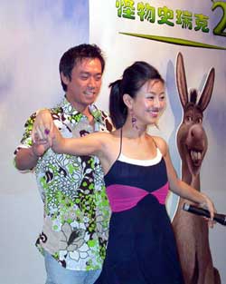 中新網(wǎng)8月6日電 據(jù)新京報(bào)報(bào)道,昨天下午,好萊塢動(dòng)畫片《怪物史瑞克Ⅱ》在北京舉辦首映活動(dòng)。按計(jì)劃,為該片配音的趙薇和王學(xué)兵出席,但只有王學(xué)兵一人到場。