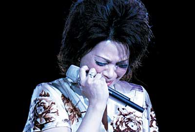 比較讓觀眾激動(dòng)的環(huán)節(jié)是最后的點(diǎn)唱部分!冻鋈贰ⅰ锻涣恕返扔^眾網(wǎng)上投票選出的蔡琴最經(jīng)典的歌曲被現(xiàn)場演繹。蔡琴還拿出了貼滿黃金的金話筒,表示:“沒有實(shí)力的人,是沒資格站在這個(gè)話筒前面的!”十點(diǎn)鐘左右,蔡琴唱了五遍《恰似你的溫柔》,演唱會(huì)在她的哭泣中結(jié)束。(記者郝曉楠)