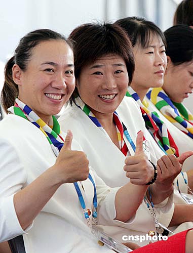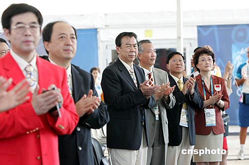 當?shù)貢r間八月九日上午,參加雅典奧運會的中國體育代表團在雅典奧運選手村舉行升旗儀式。中新社記者:毛建軍