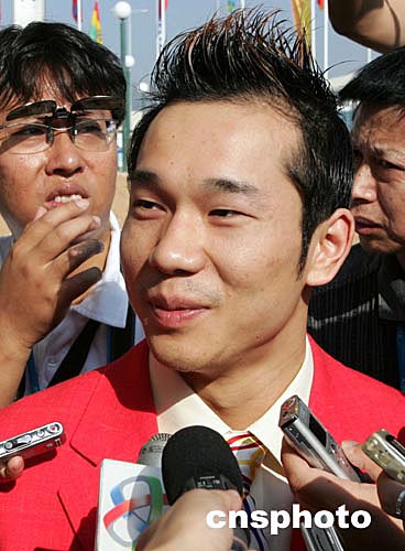 當(dāng)?shù)貢r(shí)間八月九日上午,參加雅典奧運(yùn)會的中國男子舉重六十二公斤級名將樂茂盛向記者表示,他的時(shí)尚發(fā)型可以幫助他樹立堅(jiān)強(qiáng)信念。中新社記者:毛建軍