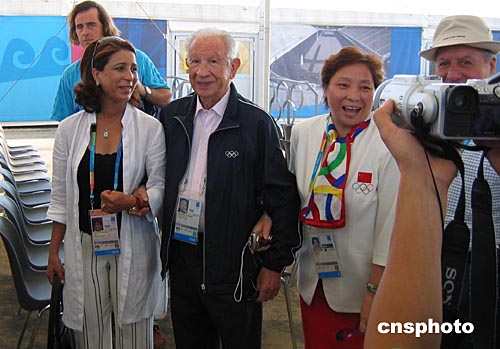 八月九日上午九時(shí)(雅典當(dāng)?shù)貢r(shí)間),薩馬蘭奇看望出席升旗儀式的中國(guó)代表團(tuán)。作者:李孝諄