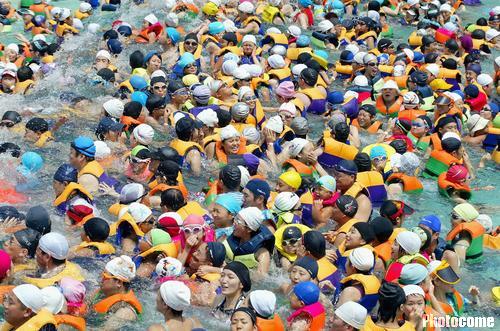 中新網(wǎng)8月11日電 據(jù)法新社消息,2004年8月0日,韓國(guó)迎來(lái)了10年來(lái)的最高氣溫35攝氏度,人們紛紛前來(lái)游樂(lè)園中的游泳池避暑,造成這里人滿為患的景象。(固山)