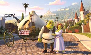 中新網(wǎng)8月11日電 據(jù)京華時報報道,集各種幽默元素于一體的“全球最賣座的3D動畫片”《怪物史瑞克2》,昨天起在全國上映。“極盡嘲諷調(diào)侃之能事”是影評人給予這部動畫片的普遍評價。那么究竟有多少經(jīng)典影片片段被該片移花接木、有多少經(jīng)典形象被該片無情戲弄?敬請看《史瑞克2》爆笑解讀。