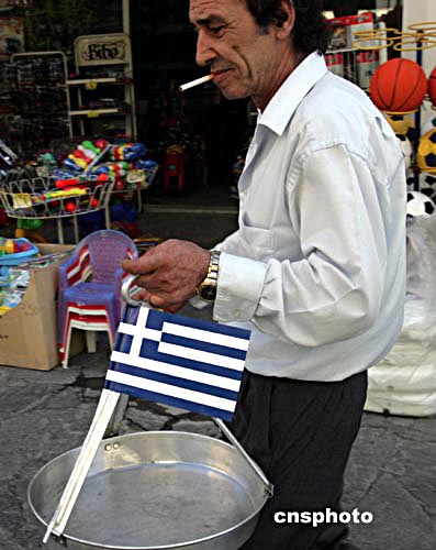 當(dāng)?shù)貢r(shí)間八月十二日,雅典奧運(yùn)會(huì)開幕前夕,一名希臘老人帶著本國(guó)國(guó)旗在街頭行走,舉手投足間彌漫著強(qiáng)烈的愛國(guó)熱情。作者:任晨鳴