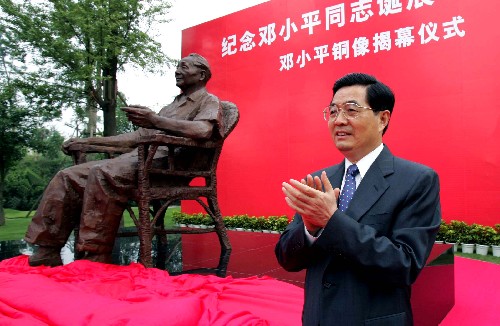 在揭幕儀式上,胡錦濤表示,鄧小平為中國革命、建設(shè)、改革事業(yè)建立的偉大功勛將永載史冊,他留下的寶貴精神財富將永遠(yuǎn)激勵我們前進。上午九時十五分,胡錦濤親手揭下覆蓋在鄧小平銅像上的紅綢。一時熱烈的掌聲雷動。