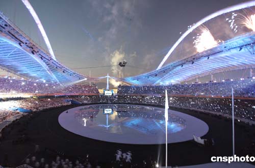 中新社雅典八月十三日電 題:眾神狂歡奧運(yùn)回家——雅典奧運(yùn)開(kāi)幕式側(cè)記