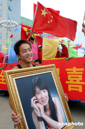 八月十四日十六點(diǎn)三十分,在雅典奧運(yùn)會(huì)女子十米氣步槍決賽中,山東籍選手杜麗奪得奧運(yùn)會(huì)第一枚金牌。喜訊傳來,曾經(jīng)培養(yǎng)過她的山東省競技體育學(xué)校的師生們揮舞著國旗歡呼慶祝。作者:王鋒
