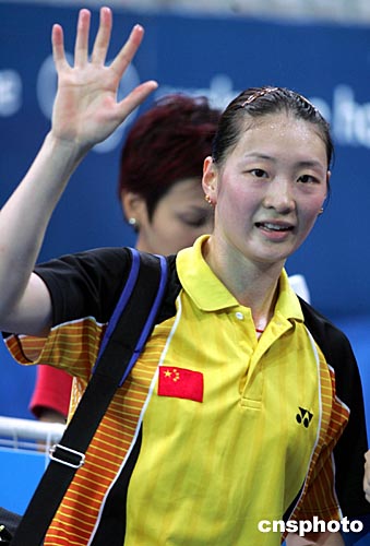 中國(guó)參加雅典奧運(yùn)會(huì)女子羽毛球單打比賽的選手龔睿那,當(dāng)?shù)貢r(shí)間8月16日以2比0輕松戰(zhàn)勝中國(guó)臺(tái)北的鄭韶婕,進(jìn)入前四名。作者:任晨鳴