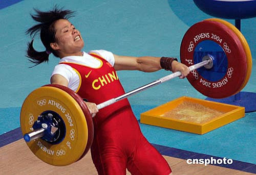 在抓舉比賽中,李成姬第一次試舉一百零二點(diǎn)五公斤失敗后,第二把終于成功。不過她第三把沖擊一百零七點(diǎn)五公斤失敗,成績停留在一百零二點(diǎn)五。陳艷青則非常穩(wěn)健,在頭把舉起一百零二點(diǎn)五公斤后,第二把又把一百零七點(diǎn)五公斤的杠鈴高高舉起,打破了抓舉的奧運(yùn)紀(jì)錄。不過她第三把沖擊一百一十公斤以失敗告終。另外一名在抓舉中表現(xiàn)出色的選手是泰國的卡美愛姆,她也舉起了一百零二點(diǎn)五公斤。