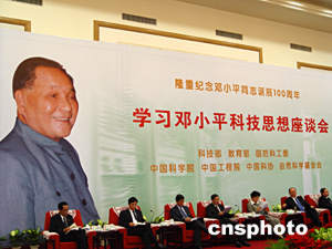 座談會(huì)由科技部部長(zhǎng)徐冠華主持,中國(guó)工程院院長(zhǎng)徐匡迪、教育部部長(zhǎng)周濟(jì)、國(guó)防科工委主任張?jiān)拼ā⒅袊?guó)科協(xié)副主席張玉臺(tái)、中科院副院長(zhǎng)李靜海、國(guó)家自然科學(xué)基金委主任陳宜瑜等主辦單位負(fù)責(zé)人,以及知名老科學(xué)家周光召、朱光亞、吳文俊等也分別講話(huà),共同緬懷鄧小平關(guān)心和推動(dòng)中國(guó)科技事業(yè)發(fā)展的豐功偉績(jī)。完