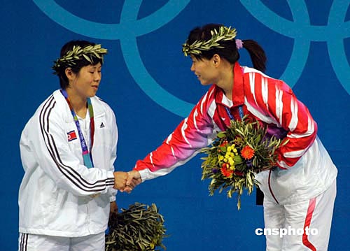 當(dāng)?shù)貢r(shí)間8月16日下午,中國(guó)女子舉重名將陳艷青在雅典奧運(yùn)女子58公斤級(jí)舉重比賽中獲得冠軍,為中國(guó)代表團(tuán)奪得第七枚金牌。作者:張煒