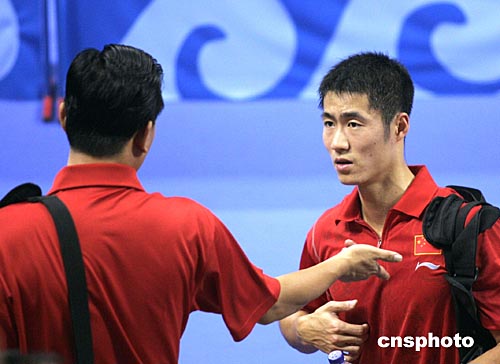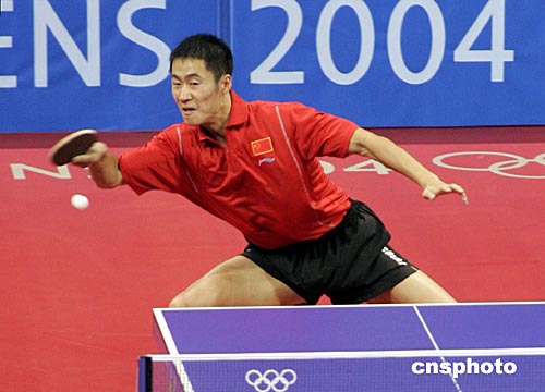 雅典時(shí)間8月17日,世界排名第一的奧運(yùn)會(huì)乒乓球男單頭號(hào)種子選手王勵(lì)勤以4比1戰(zhàn)勝荷蘭老將凱恩,率先闖進(jìn)男單前16名。中新社記者:張煒