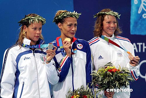 當?shù)貢r間八月十七日晚,羅馬尼亞選手卡美麗婭獲得雅典奧運女子二百米自由泳金牌。中新社記者:毛建軍