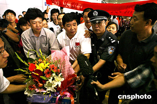 中新網(wǎng)8月18日電 據(jù)央視國際消息,參加雅典奧運會的中國體育代表團(tuán)部分運動員在結(jié)束比賽后,今天上午回到首都北京。