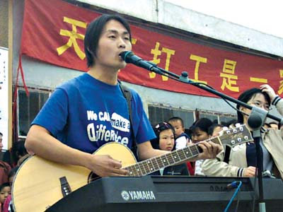 “打工青年藝術(shù)團”成立于2002年5月1日,初始團員10人,都是來自各行各業(yè)的打工青年,他們利用業(yè)余時間到工地、工廠和小區(qū)給打工者們演出,兩年來共演出了100多場,累計觀眾達到了20000多人次,在北京打工者中間受到熱烈的歡迎,很多人直接從觀眾加入到了演員隊伍。隨著影響的擴大,他們還成立了“農(nóng)友之家”社會公共服務(wù)機構(gòu),為打工者提供法律咨詢、文化教育、權(quán)益維護、大眾電腦教室、社區(qū)互助圖書館等多方面的幫助。