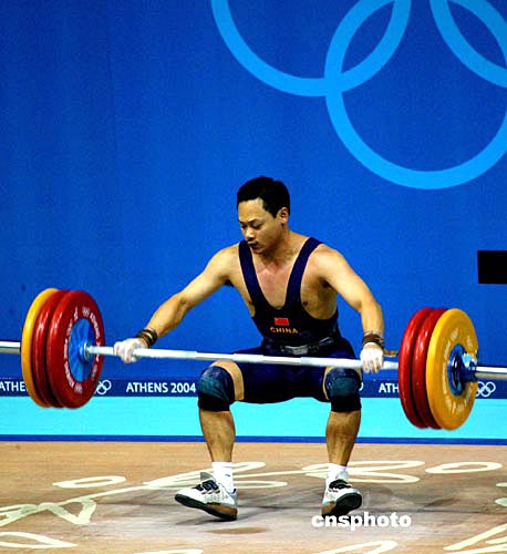首先進(jìn)行的是該級別的抓舉比賽,占旭剛第一把最初要的是一百五十五公斤,不過比賽開始后他卻改成了一百五十七點(diǎn)五公斤。雖然他傾盡全力,但是連續(xù)三次抓舉都沒有成功,未能獲得抓舉成績。