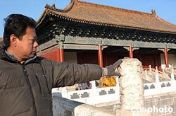 北京太廟戟門(mén)前金水橋防風(fēng)化保護(hù)工程日前完工。經(jīng)過(guò)幾百年的風(fēng)吹日曬和酸雨的侵蝕,太廟戟門(mén)前金水橋的部分欄板和望柱出現(xiàn)不同程度的裂紋,風(fēng)化嚴(yán)重地方甚至出現(xiàn)整體疏松現(xiàn)象。為此,文物部門(mén)采用防風(fēng)化、耐老化等性能最好的化學(xué)材料,對(duì)此石質(zhì)文物進(jìn)行了化學(xué)保護(hù),并更換了部分雕龍漢白玉望柱(圖)。太廟位于紫禁城的左前方,建于1420年,是皇宮外朝重要組成部分,和中國(guó)目前僅存且保存最完整、規(guī)模最大的皇家祭祖建筑群。此次工程也包括太廟犧牲所的修繕,總用資100萬(wàn)元人民幣。中新社記者:鄒憲