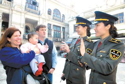 由于沙面是領(lǐng)館區(qū),很多外國人在此生活,所以隊員們的英語都是“一級棒”。據(jù)了解,這8名女隊員中,4人達到大學英語6級水平,2人達到專業(yè)英語8級水平,其他隊員至少也達到大學英語4級水平,能和外國人進行日常英語口語交流。(文/楊進、陳穗華、張文濤;圖/王燕)