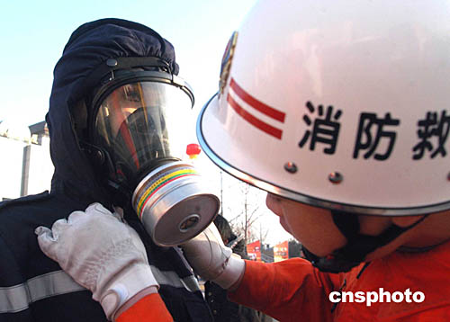 1月10日是“110”報警服務(wù)臺建臺19周年紀念日,110報警服務(wù)臺在北京西單文化廣場舉辦“110”主題宣傳活動。圖為消防隊員在向市民展示防化防核服。中新社記者:張宇