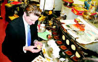 中新網(wǎng)1月12日電 據(jù)世界日?qǐng)?bào)報(bào)道,舊金山市長(zhǎng)紐森10日拜會(huì)華埠,并在華埠吃越南粉、嘗人參、為顧客整理頭發(fā),還親手做了兩個(gè)幸運(yùn)簽餅。