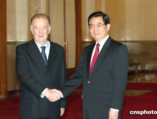 圖:胡錦濤會見葡萄牙總統(tǒng)桑帕約