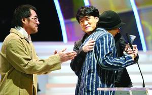 昨晚,掀起現(xiàn)場氣氛最高潮的是當選“感動藝人”的傅彪。傅彪上臺后因一度哽咽而中斷了講話:“不久前有一個普通的演員在醫(yī)院接受治療,他的愛人告訴他在新浪網(wǎng)上接收了上萬條的祝福。于是奇跡出現(xiàn)了,今天我站在這里了。我代表我的愛人、我的兒子對網(wǎng)友表示深深的謝意!备当氡硎荆骸拔乙恢倍继嵝炎约阂诠_場合忍住,但是今天太感動了!彼M2005年能夠重返銀幕小試身手。